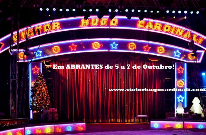 O Circo Victor Hugo Cardinali vai estar em Abrantes de 5 a 7 de Outubro. Instalado no Tecnopolo do Vale do Tejo, em Alferrarede, o circo terá espectáculos na Sexta-Feira às 21h45, Sábado às 16h e às 21h45 e Domingo às 16h. Mais informações em www.victorhugocardinali.com