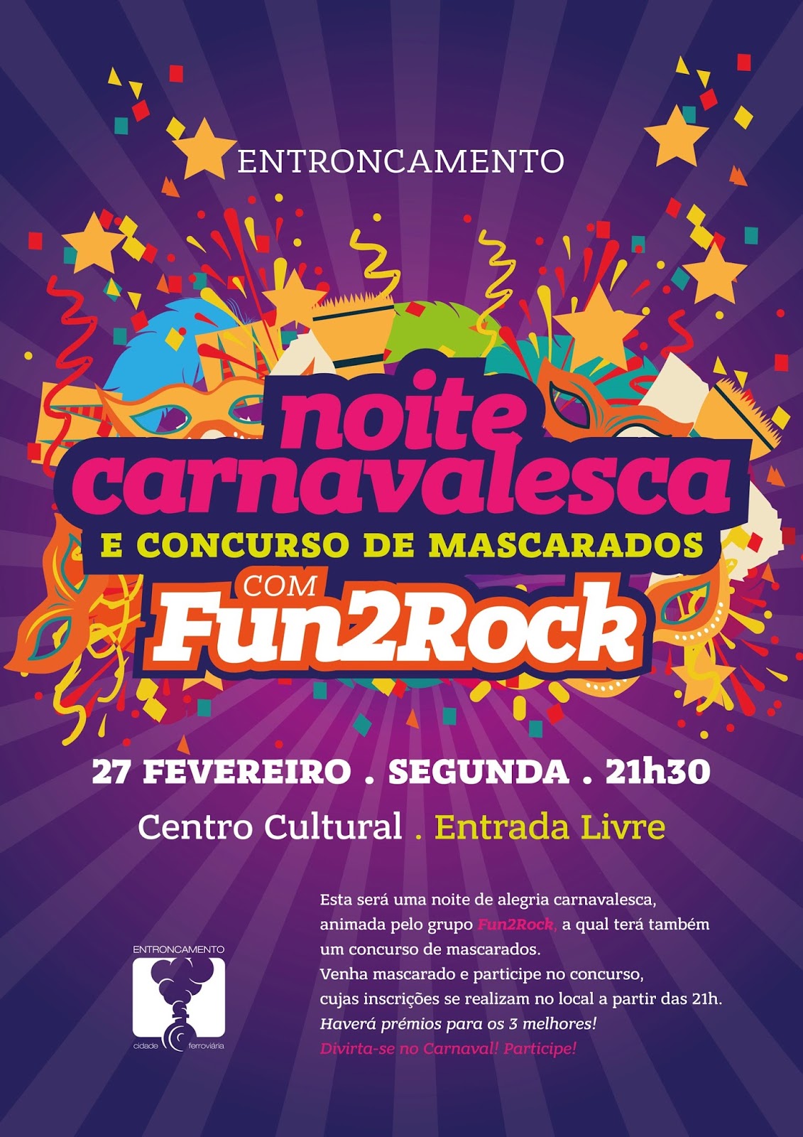 O Município do Entroncamento promove esta segunda-feira, dia 27 de fevereiro, às 21h30, no Centro Cultural, uma Noite Carnavalesca e um Concurso de Mascarados.